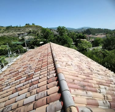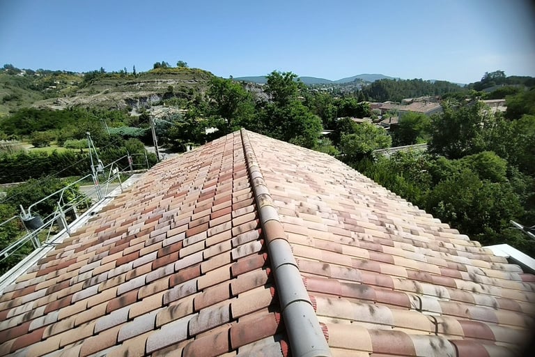 Entretien de la toiture: Le couvreur effectue un nettoyage régulier de la toiture pour éliminer les feuilles mortes, les mousses et autres débris qui peuvent obstruer les gouttières et endommager le revêtement. Il inspecte également l'état général de la toiture et procède aux petits travaux de réparation si nécessaire.