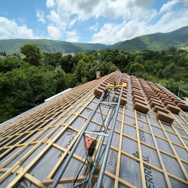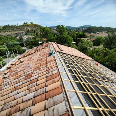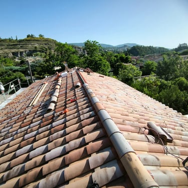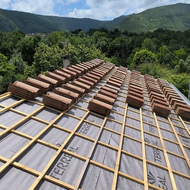 Pose de la couverture: Le couvreur intervient dans la pose de tous types de revêtements de toiture, tels que les tuiles, l'ardoise, le zinc, les tôles, le bitume, le chaume, les bardeaux, etc. Il assure l'étanchéité de la toiture en veillant à la bonne installation des matériaux et à la réalisation de raccords impeccables.