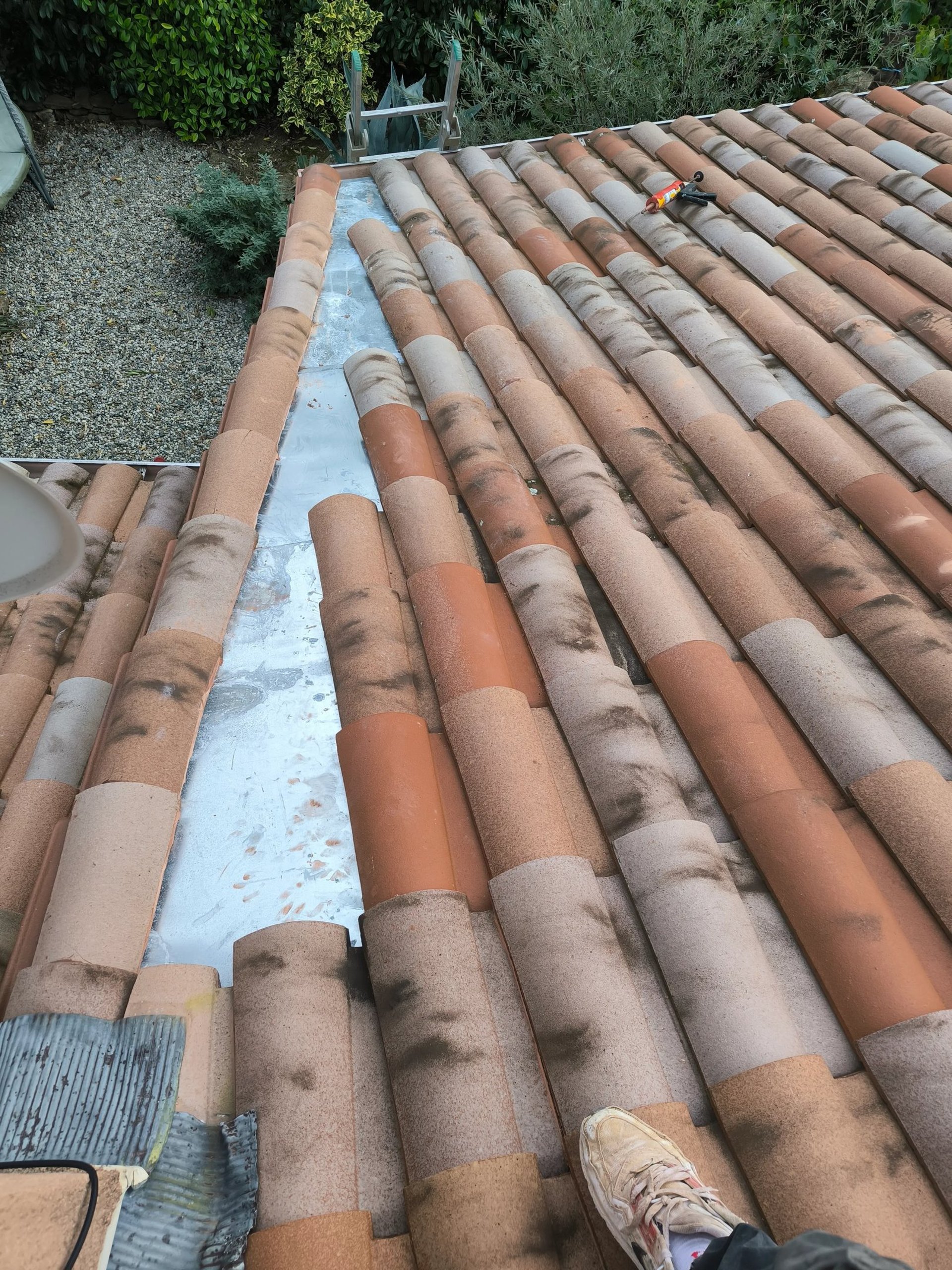 Oui. Nous proposons le démoussage (grattage et traitement fongicide) pour éliminer les lichens et mousses qui rendent les tuiles poreuses.